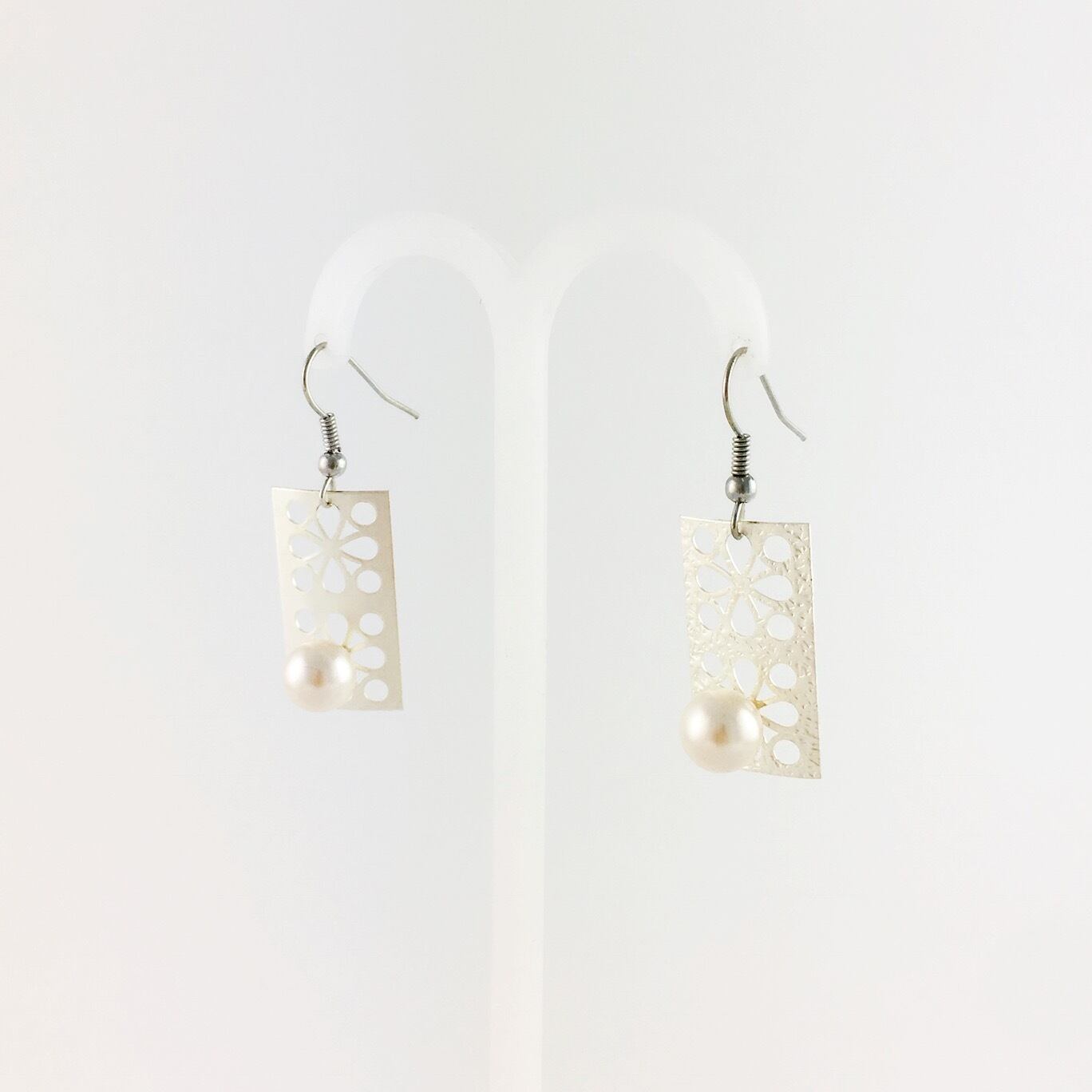 フラワーモチーフの透し模様とスワロフスキーのクリスタルパールが、デイリーやお出かけに丁度良いサイズ感!